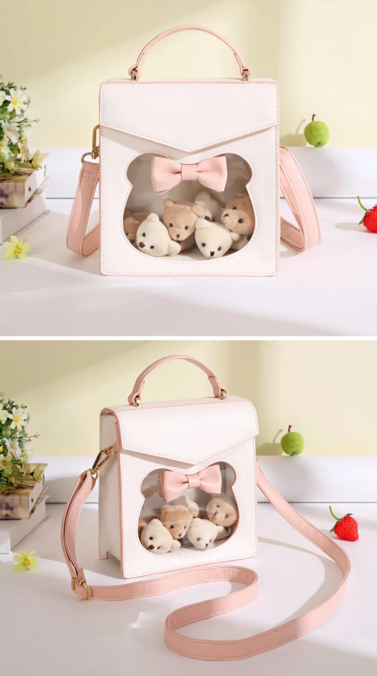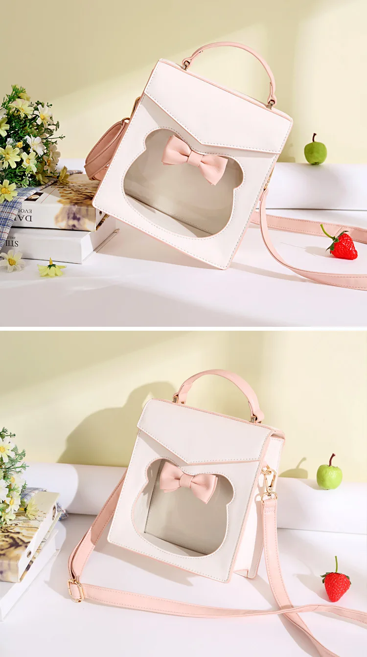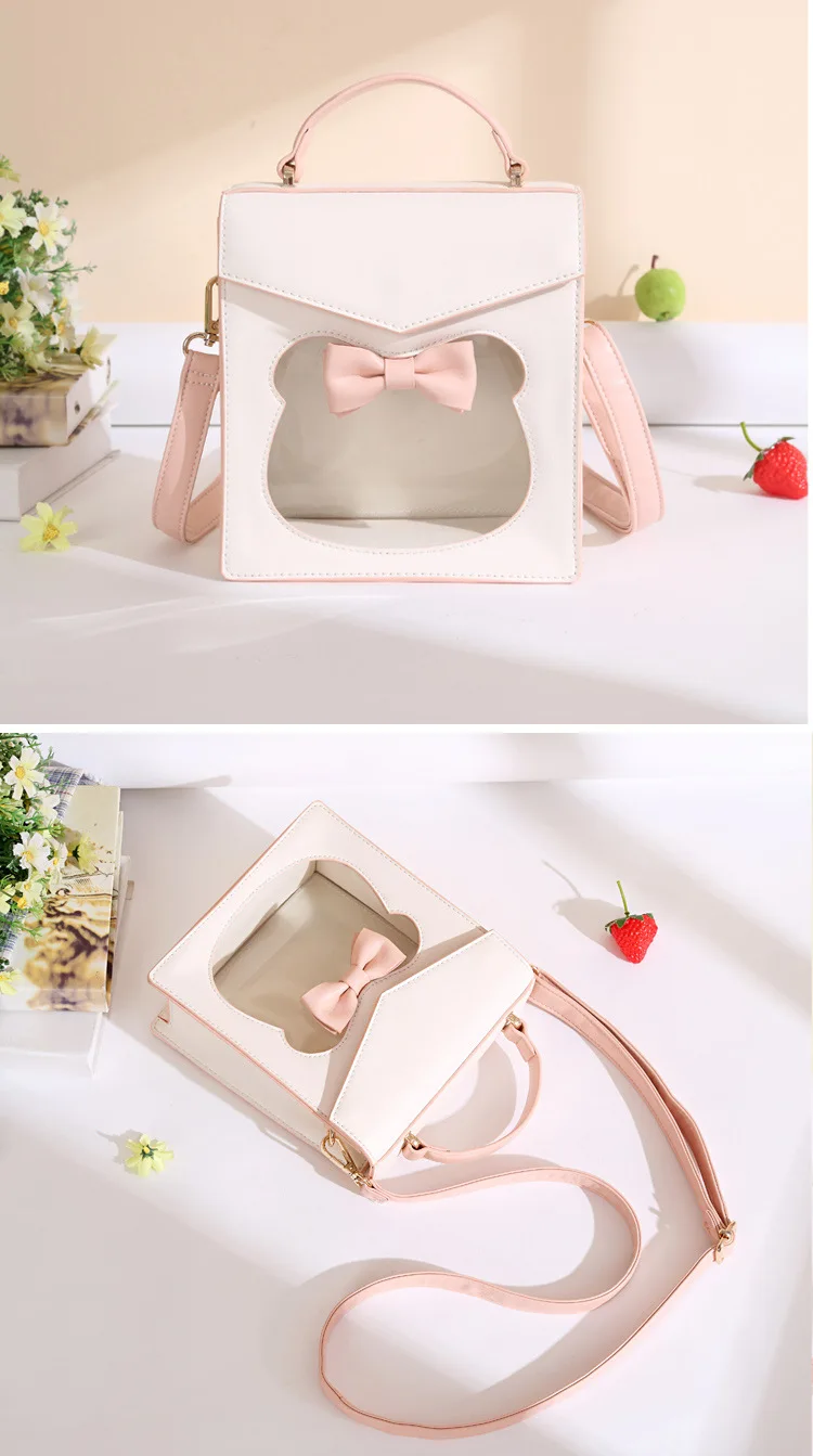 Nothing can be cuter than this light pinkish-colored kitty handbag. Moreover, the ribbon attached to the head of the transparent cat elevates the look even more. And considering the high quality of the bag, you can’t resist it for sure.
